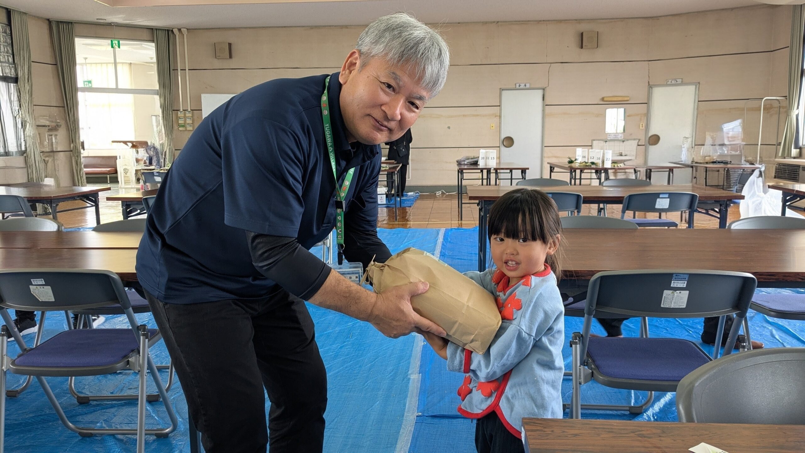 体験会の締めくくりとして、参加者一人ひとりに「自分たちで栽培したお米5kg」と「修了証」をお渡ししました。笑顔でお米を受け取る皆さんの姿から、一年間のお米づくりをやり遂げた達成感が感じられました。